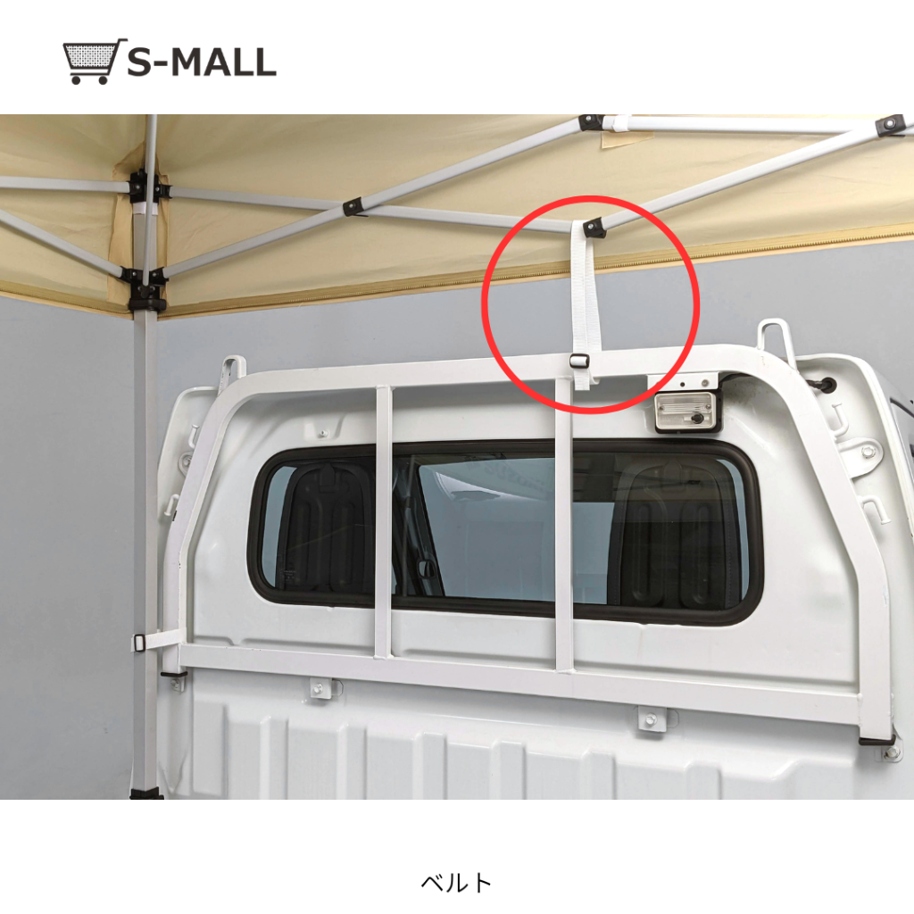 軽トラに「スズキ軽トラ市セット(ワンタッチテントセット) 軽テン」を固定する取付キット。軽トラ固定キットがあれば、軽トラックと一体感ある移動販売車になります。